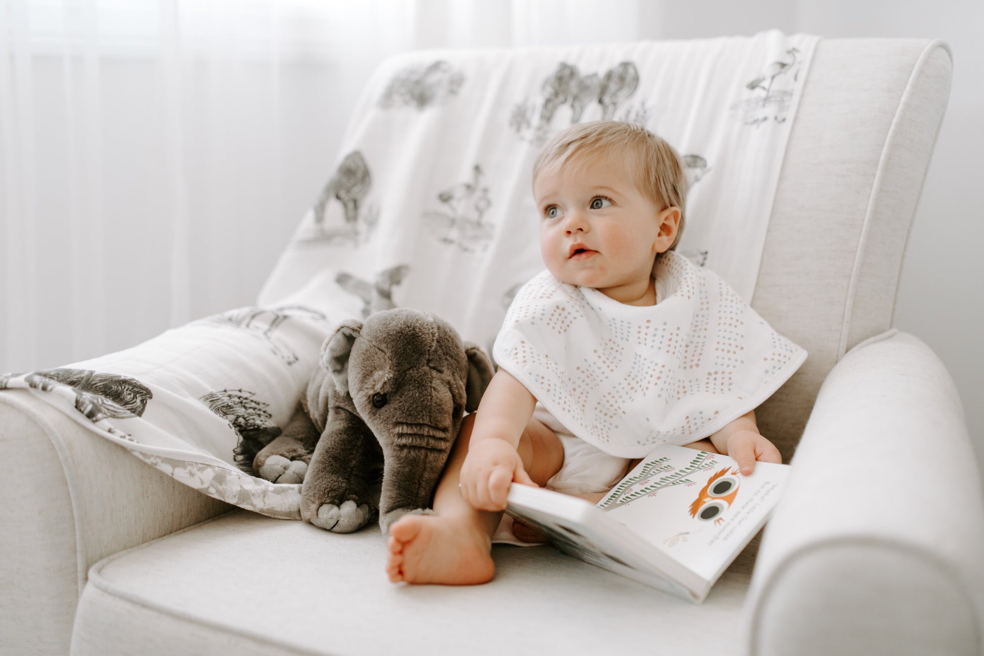 A bib and burp cloth in one, aden + anais' 100% cotton muslin patented burpy bib’s design keeps you and your little one clean. Drape it over your baby’s shoulders and snap it at the back for a full-coverage bib or place it over your shoulder for a no-slip burp cloth. Machine washable, it stays soft wash after wash.