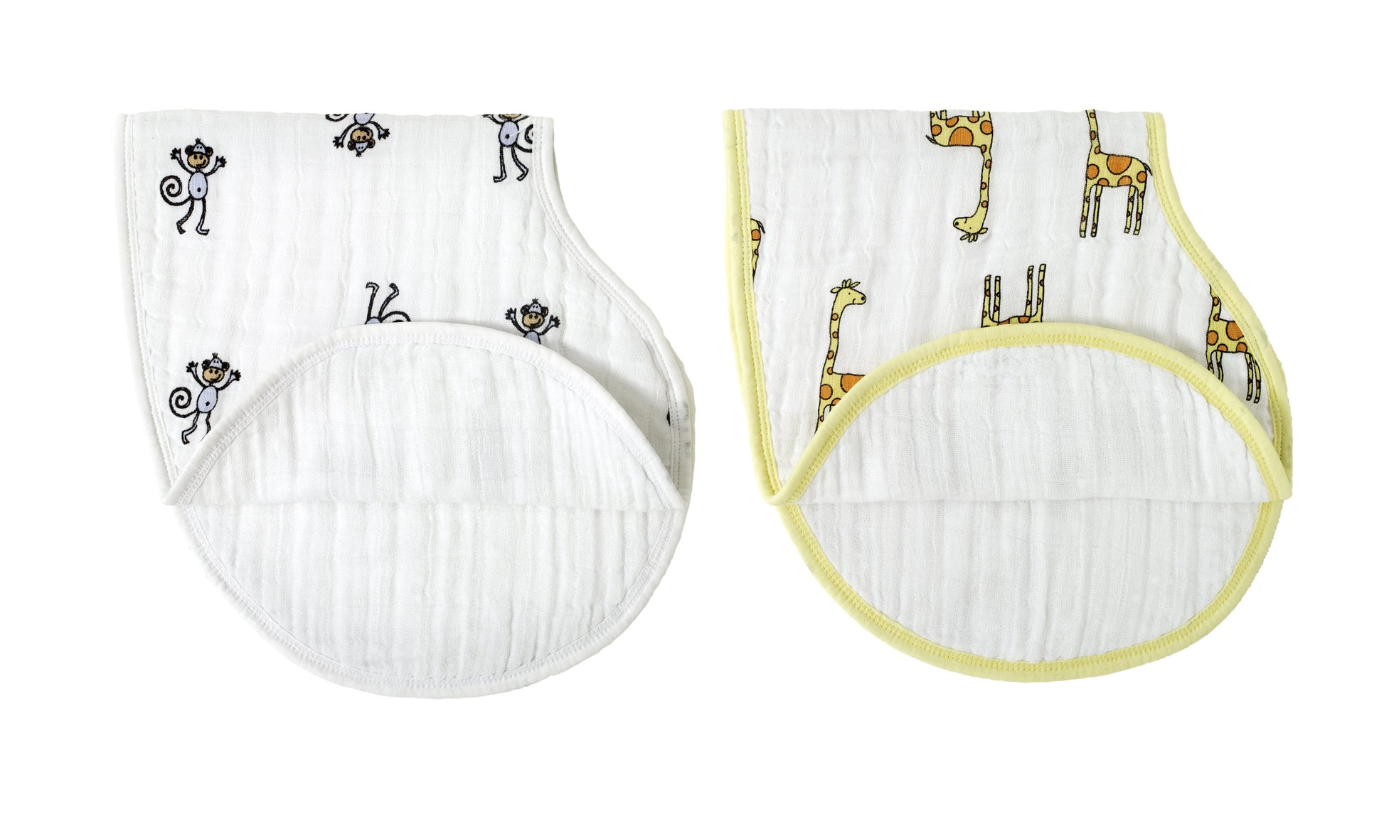 aden + anais jungle jam classic burpy bibs 2 pack. Versatile: can be used as a full coverage bib or burp cloth. Absorbent: four layers of cotton muslin soak up spills, drools, and baby burps. Durable: stays soft wash after wash. Easy care: machine washable.