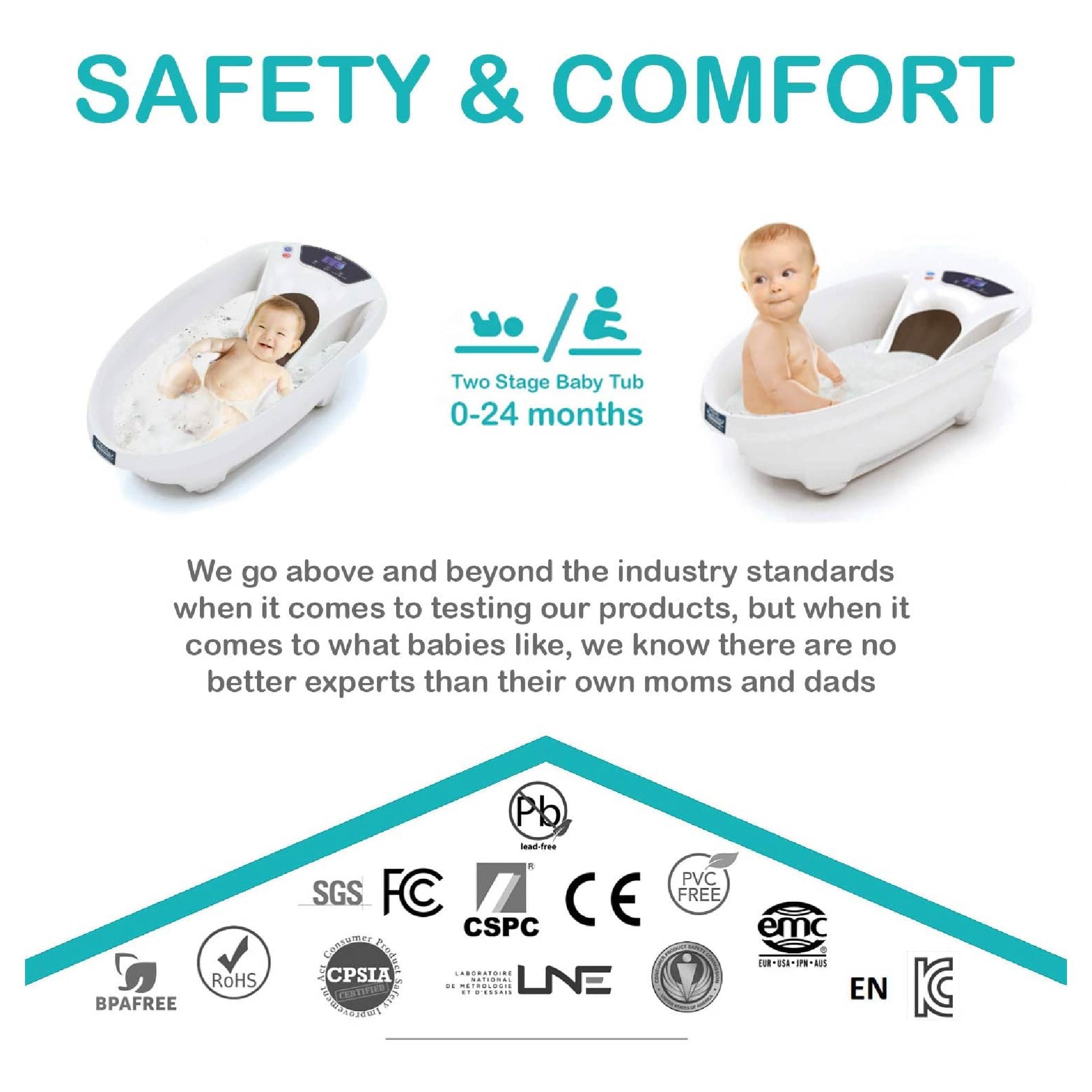 Anti-slip pad for maximum comfort and safety keeps baby securely in place & provides extra comfort to infant Water Thermometer ensures water is not hot or too cold